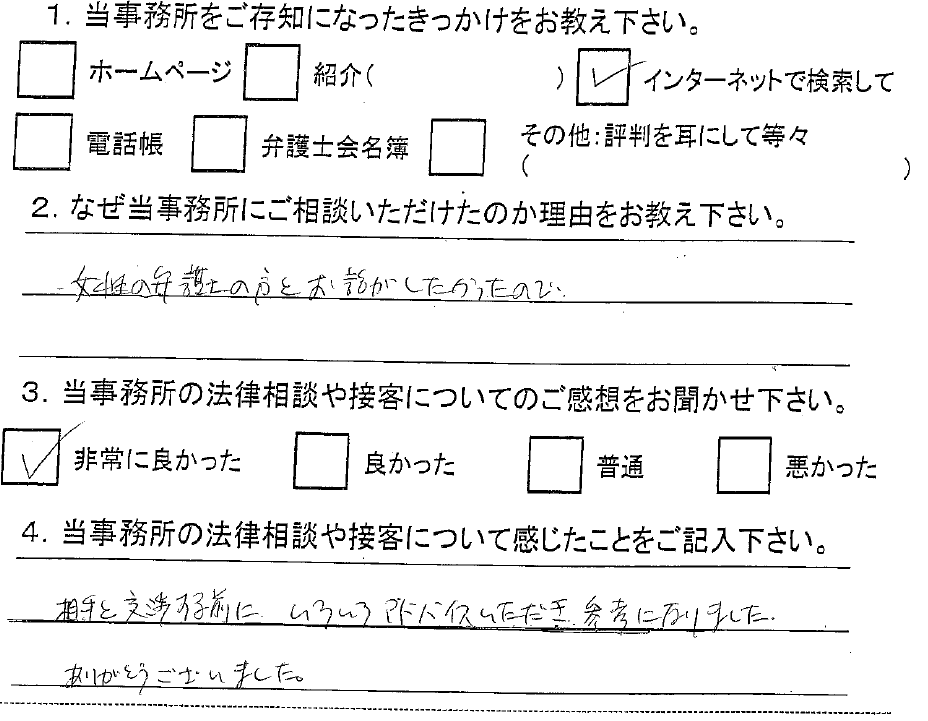 女性の弁護士の方とお話がしたかったので