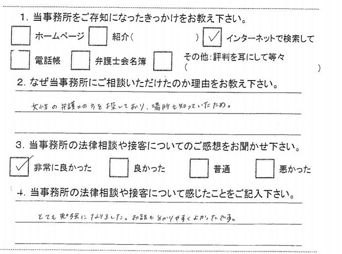 女性弁護士希望でした。ホームページも見やすくてよかったです。