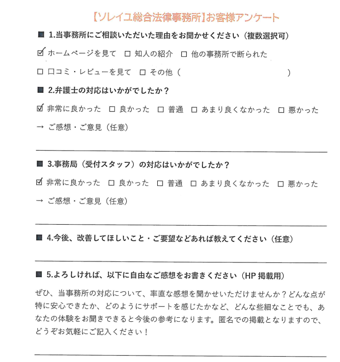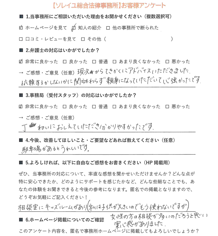 現状からてきかくにアドバイスいただきました。依頼するかしないかに関わらず親身になっていただいて心強かったです。